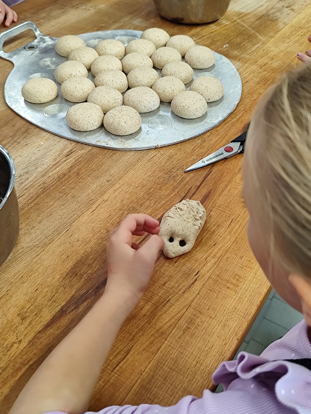 Als der Teig fertig war, durfte jeder daraus kleine Igelbrötchen formen. Diese wurden am nächsten Tag zum Frühstück in der Schule gegessen!